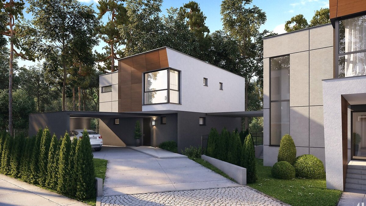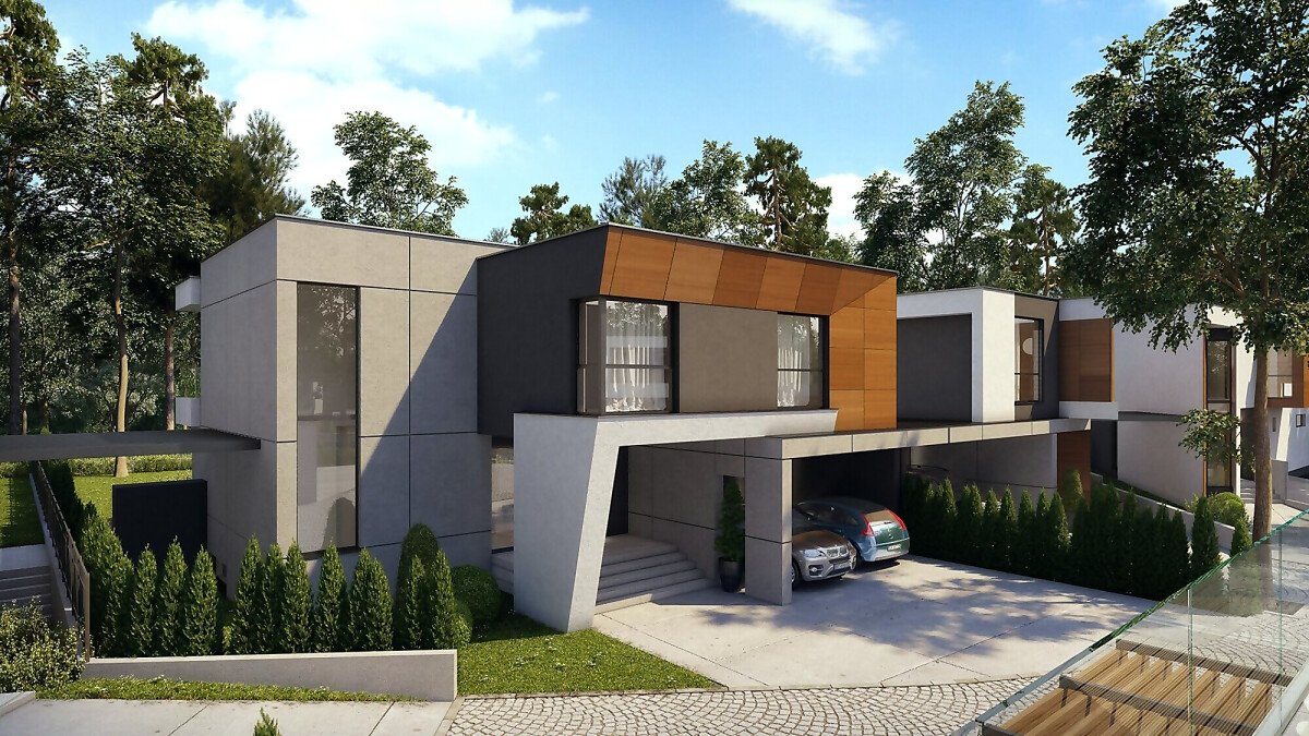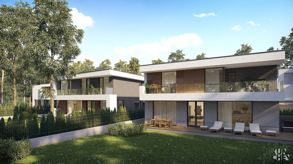 Четирите редови къщи, проектирани с особено внимание към детайлите, разполагата със съвременен дизайн и архитектура, която се слива с околната среда. Те са просторни и са на нива с различна височина, панорамни прозорци и самостоятелен двор, където има зона за барбекю и релакс, както и две паркоместа за Вашите гости.
