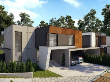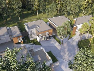 Самостоятелните къщи в “360° Резидънс” са разположени в най - южната му част - имат невероятен екстериор и страхотна гледка към Витоша планина и са разположени сред озеленена растителност, даващи усещането за връзката с природата.