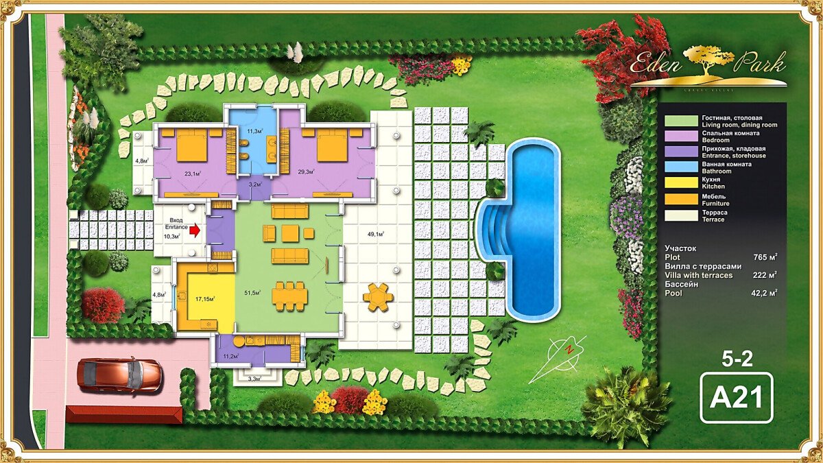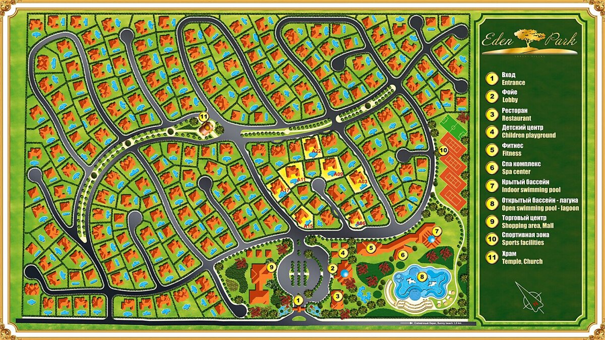 „Идън Парк“е елитен комплекс, разположен на 2 км от прекрасните плажове на курорта Слънчев бряг – приказно място за живеене и отдих, което се разпростира на площ от 400 000 кв.м. Тук се предлагат великолепни еднофамилни къщи в средиземноморски стил, всяка със самостоятелен басейн и дворно пространство.,