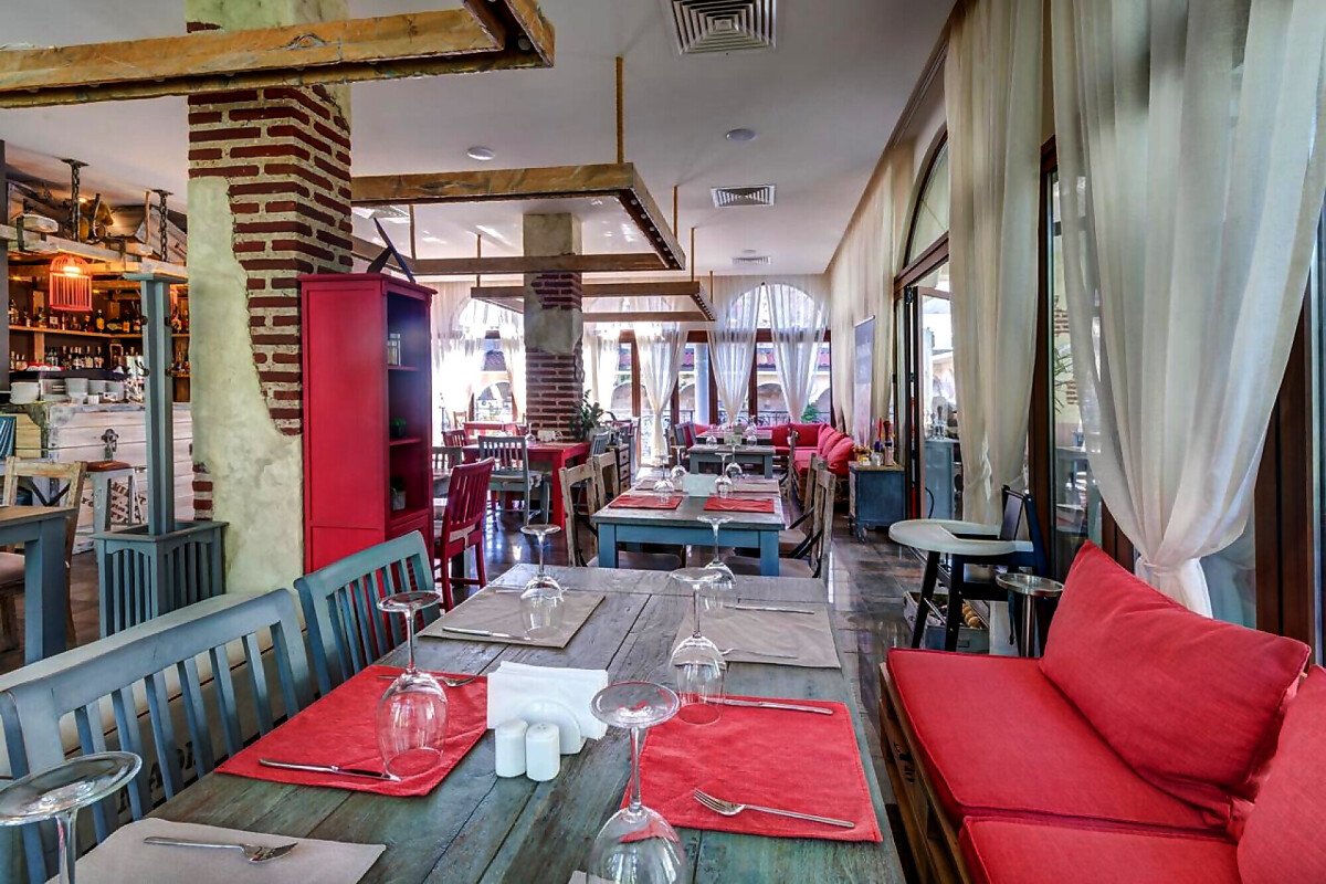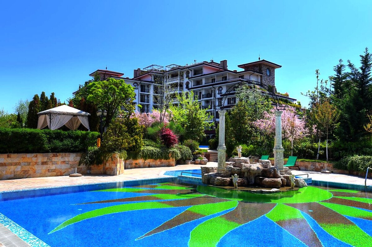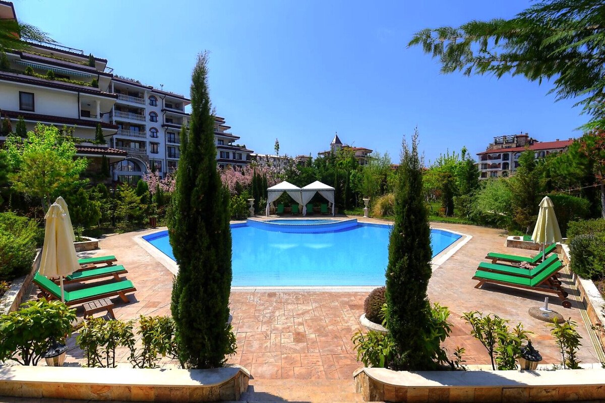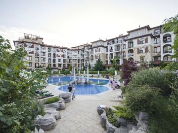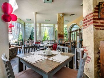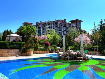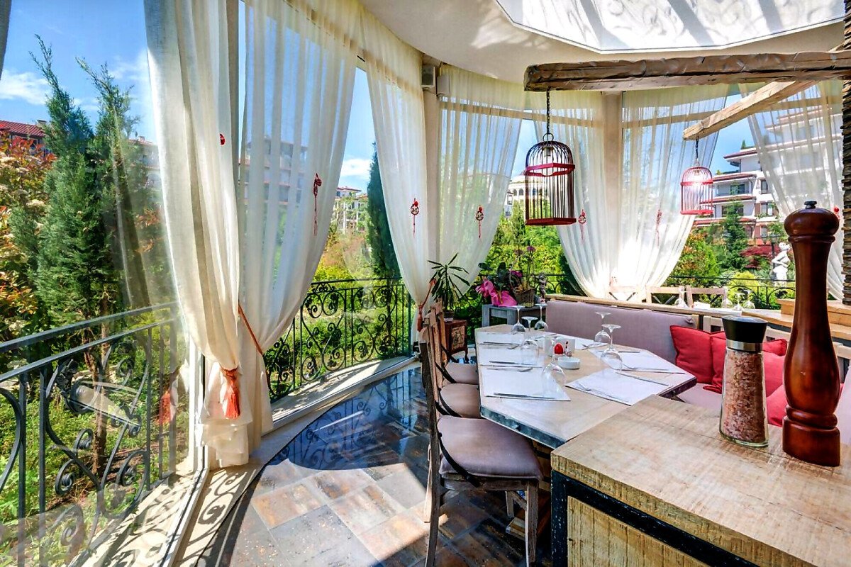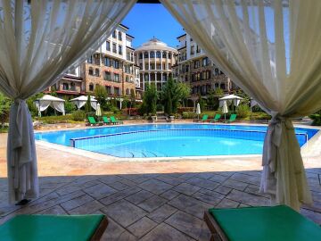 На територията на комплекса има три басейна, страхотна богато озеленена градина, превъзходен ресторант, който предлага вкусни средиземноморски и български ястия.