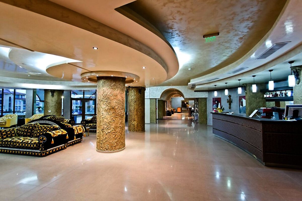 Комплексът впечталява с елегантна архитектура, намира се на тихо място само на 300 м от плажа и предлага следните удобства: