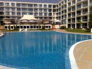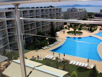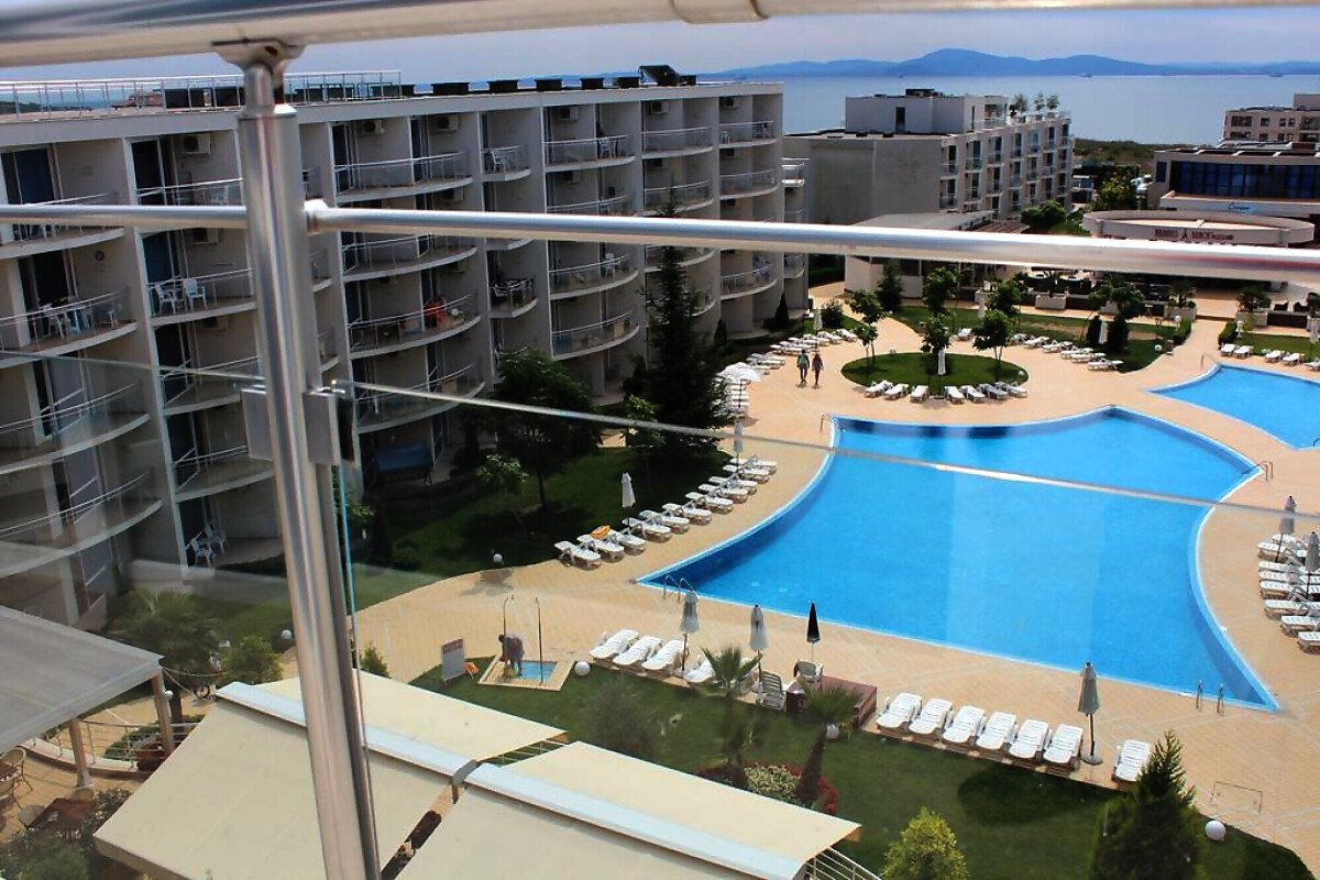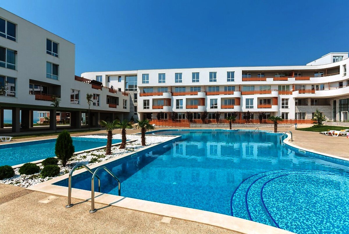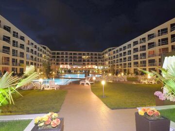 Комплекс “Атлантис” има модерна и стилна архитектура и представлява шест сгради с пленителна градина, където има разкошни и луксозно обзаведени студиа, едноспални и двуспални апартаменти, с изглед към Бургаския залив, басейна и двора на комплекса