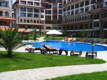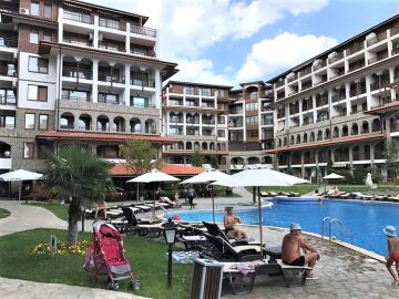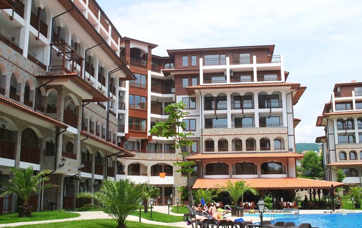 Комплексът представлява две големи сгради, а между тях има два басейна - за деца и възрастни и красива градина, която е озеленена и добре поддържана.