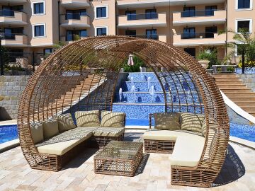 Комплексът има просторни апартаменти, които са обявени за продажба, а гледката от големите им тераси са уникални - към морето и планината.