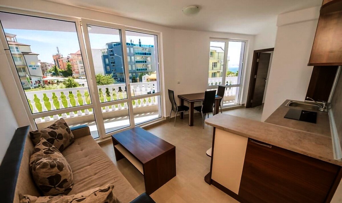 Апартаментите в комплекса са просторни с панорамни прозорци, имат южно и югоизточно изложение, повечето от тях са с прекрасен изглед към морето.