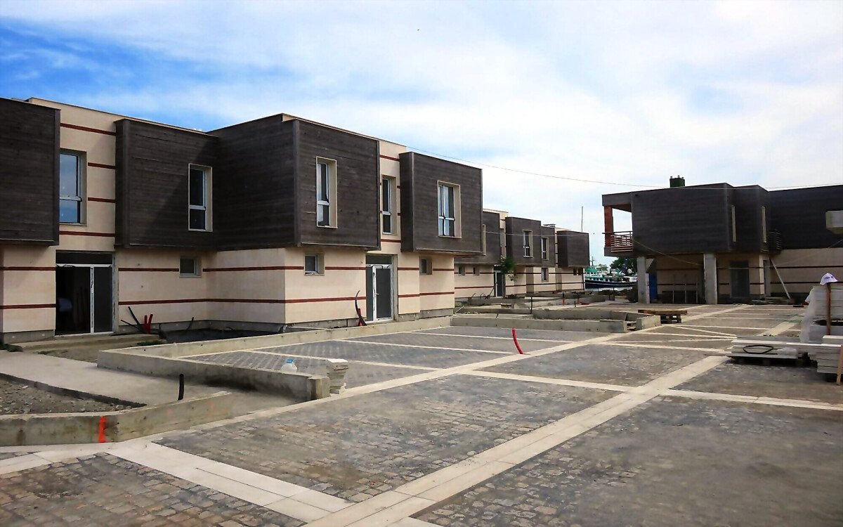 В този комплекс има къщи, които имат собствен двор и гараж за два автомобила.