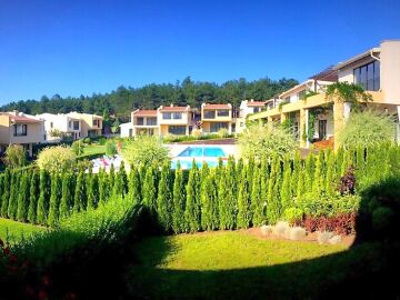 В територията на комплекса има голям басейн и красиви алеи за разходки.
