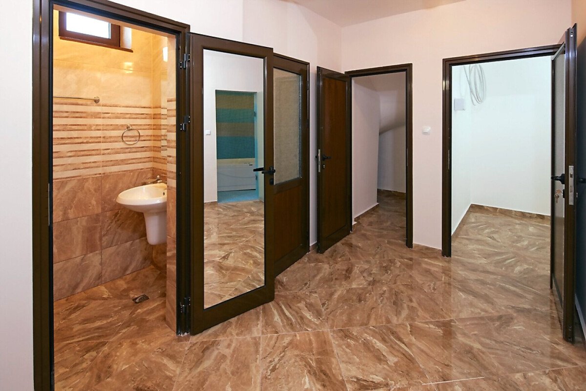 Първи етаж – хол с кухненски бокс, баня с тоалетна.