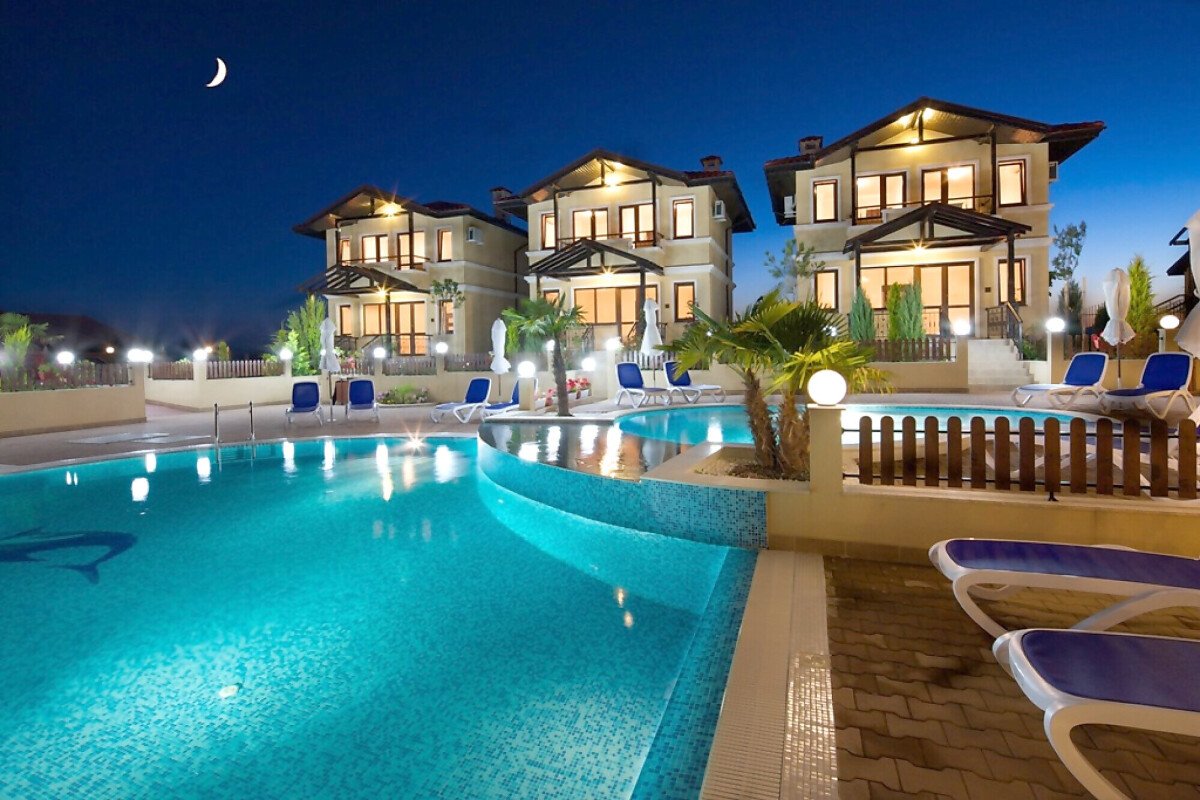 Комплексът се състои от 12 вили, които по външен вид са еднакво разкошни.