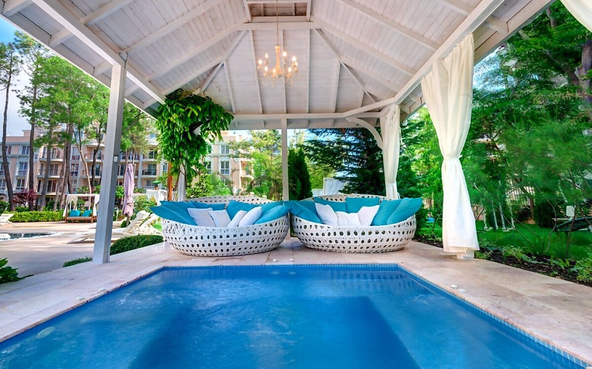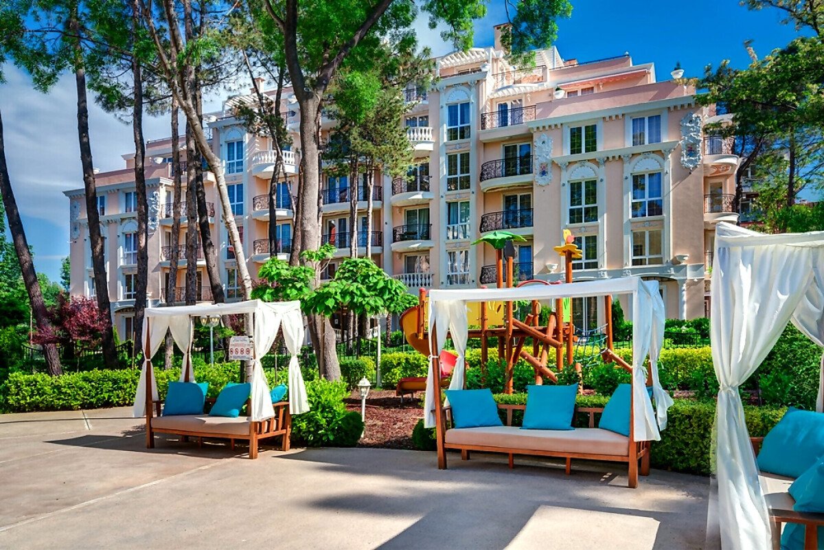 Шатри с балдахини, басейни и лагуни, екзотична градина с рекичка, детски площадки, фитнес на открито, всичко това може да ви накара да се почувставате като в приказка.